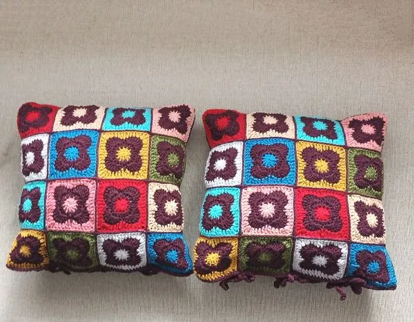 Nauji rankų darbo nerti užvalkaliukai pagalvėlėms iš vilnos ir akrilo siūlų.