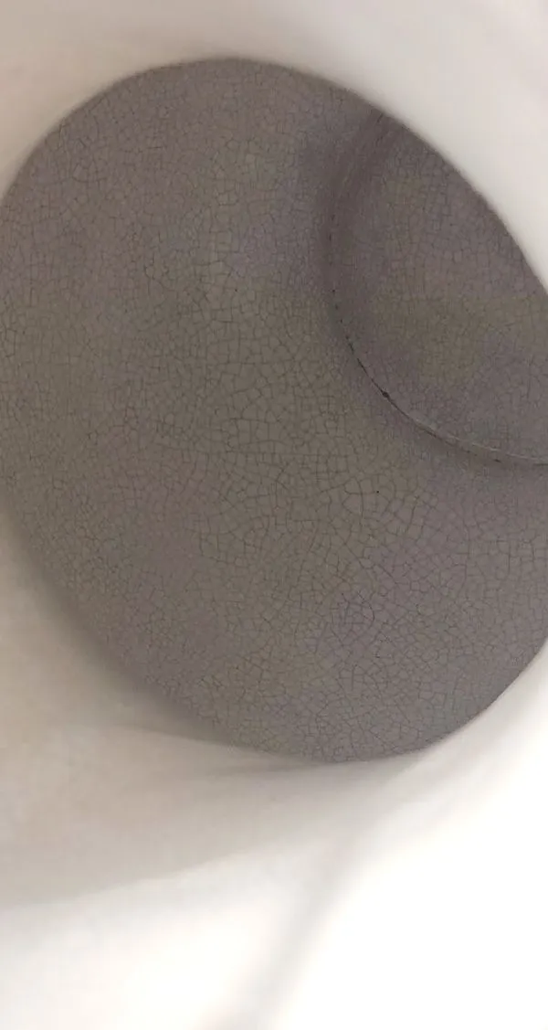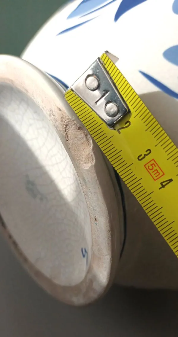 Yra nuodaužėlė ant apatinio apvado (pado) - matosi nuotraukose.