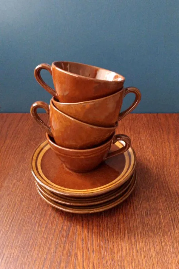 Keraminiai puodeliai 200ml, su lėkštute, 4vnt.