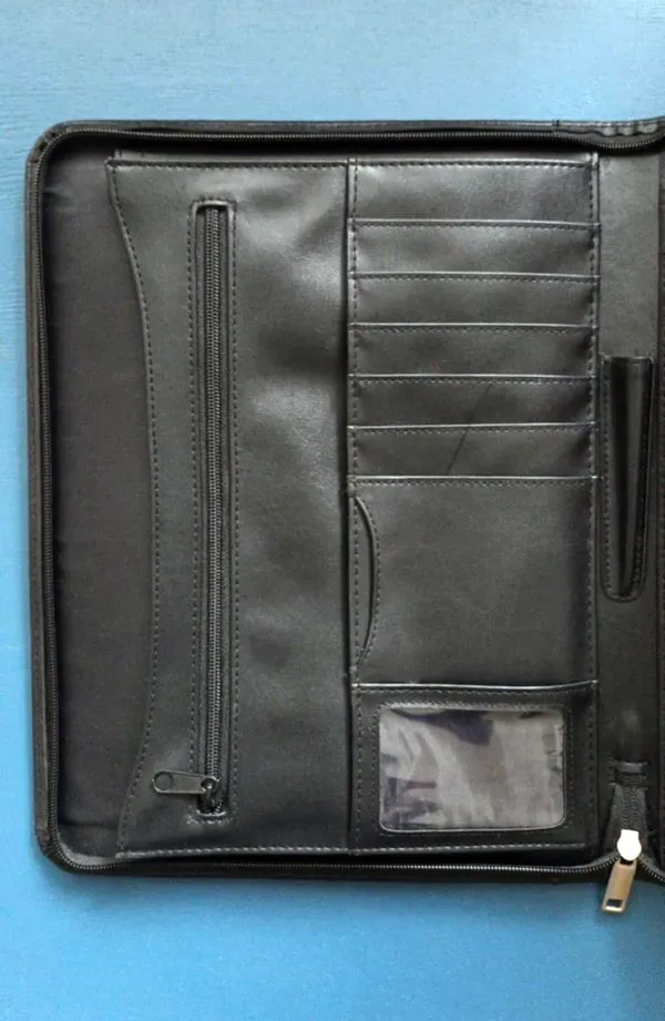 Dirbtinės, minkštos odos portfelis dokumentams.