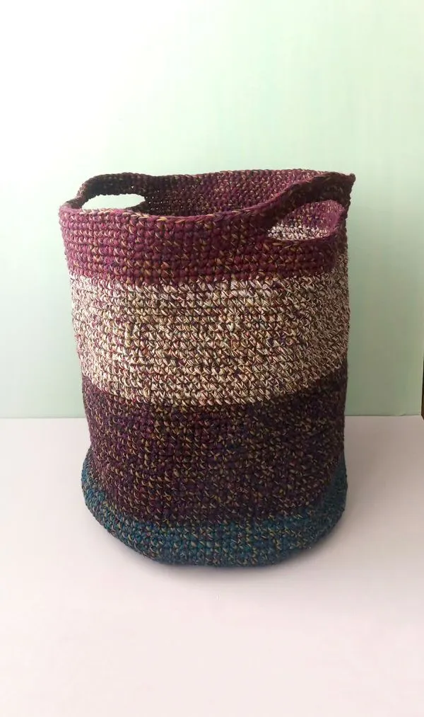 Rankų darbo didelis nertas krepšys, 25,5-28cm skersmuo