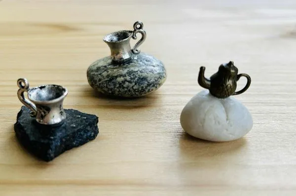 Miniatūriniai suvenyrai skirti namų interjerui, kompozicijoje trys vienetai.