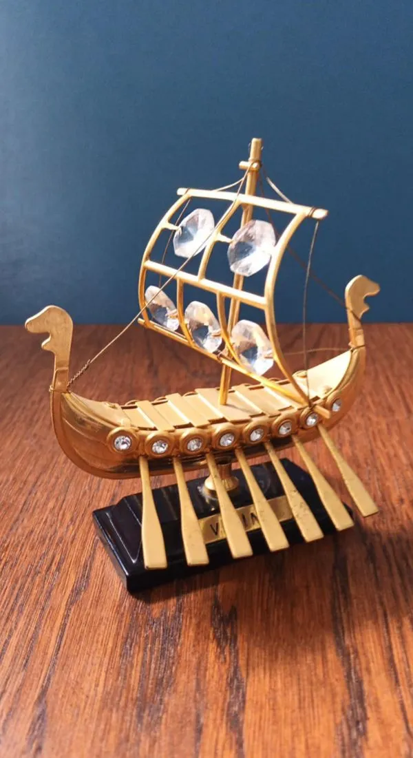 Vikingų laivo statulėlė su Svarovskio kristalais