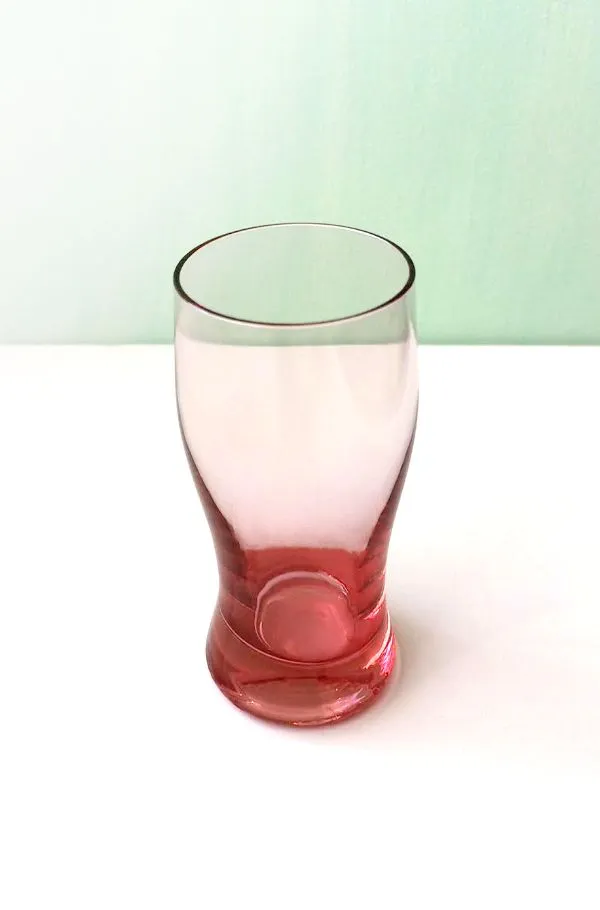 Taurės spanguolių spalvos. Matomi stiklo liejimo sukūriukai dugne, be pramoninių žymėjimų.