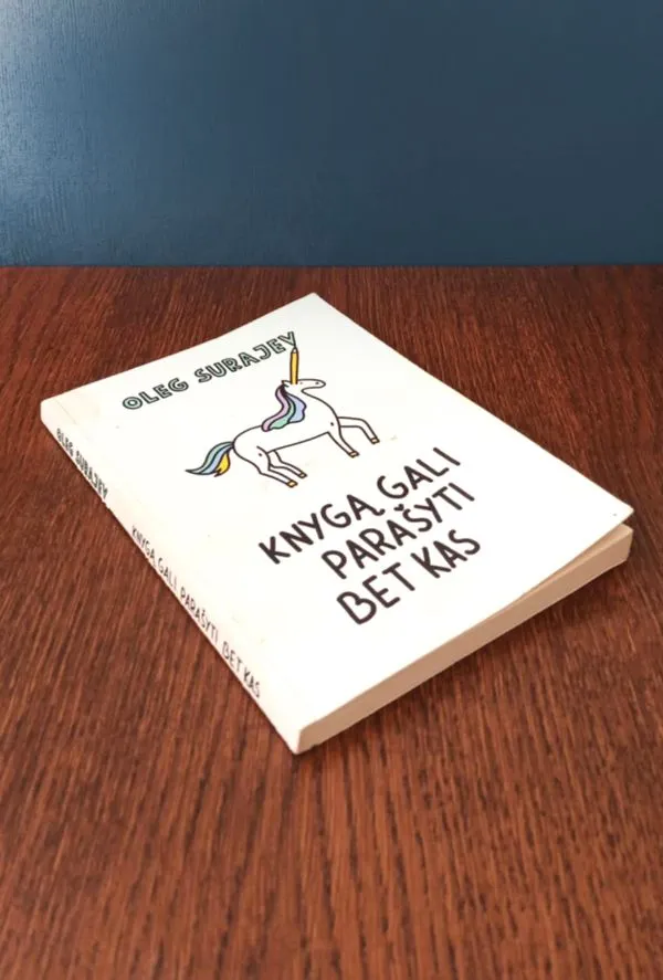 Vieno populiariausių komikų Lietuvoje Olego Šurajevo knyga „Knygą gali parašyti bet kas“ – tai pirmoji lietuviška komedijos žanro knyga. Autorius joje pristato savo sukurtas istorijas, netikėtas, kartais šokiruojančias ir paradoksalias mintis ar fantazijas.