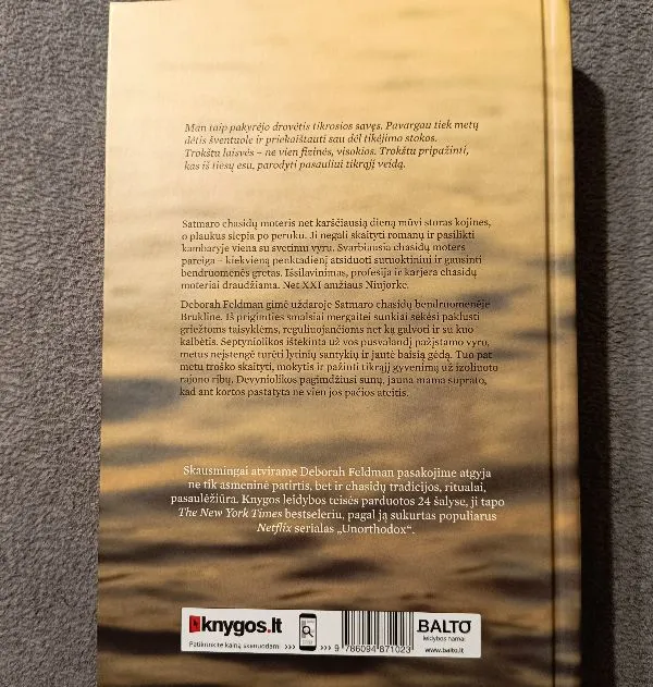 Skausmingai atvirame Deborah Feldman pasakojime atgyja ne tik asmeninė patirtis, bet ir chasidų tradicijos, ritualai, pasaulėžiūra. Knyga tapo The New York Times bestseleriu, pagal ją sukurtas populiarus Netflix serialas „Unorthodox".