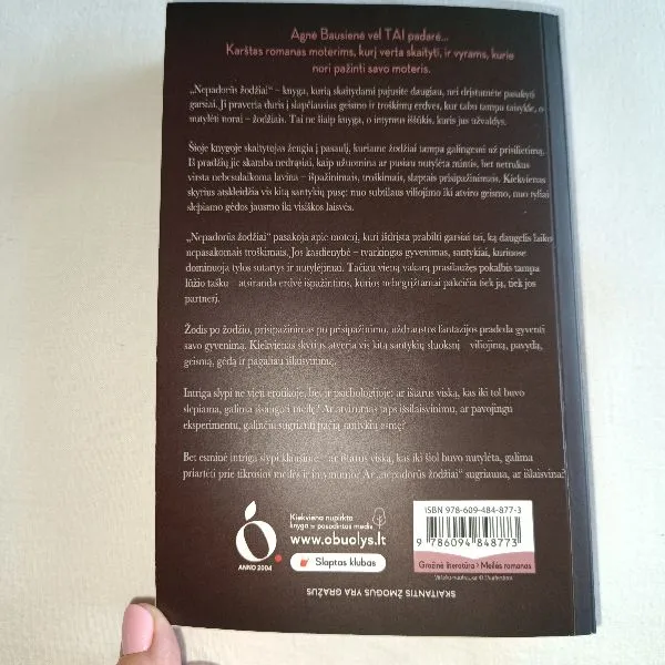 Agnė Bausienė vėl TAI padarė... Ši knyga privers jus pajusti daugiau, nei drįstumėte pasakyti garsiai. „Nepadorūs žodžiai“ – tai ne tik romanas, bet ir intymus iššūkis, kuris atvers duris į slapčiausias geismo ir troškimų erdves. Čia tabu tampa taisykle, o nutylėti norai – žodžiais. Galinga emocija. Žodžiai, stipresni už prisilietimą, virsta audringa išpažinimų lavina. Santykių anatomija. Kiekvienas skyrius atskleidžia kitą artumo ir geismo pusę. Psichologinė intriga. Ar atvirumas išlaisvina, ar sugriauna santykius? Moterims ir vyrams. Tai knyga, kurią verta skaityti visiems, norintiems pažinti tikrąją aistrą. Viduje: Slapti prisipažinimai. Nedrąsūs žodžiai, tampantys geismo lavina. Užuominos, kurios virsta atvirumu. Santykių dinamika. Viliojimas ir pavydas. Geismas ir gėda. Išsilaisvinimas ir artumas. Psichologinis gilumas. Tabu ir iššūkiai. Meilės ir atvirumo ribos. Kodėl verta: Intymus iššūkis. Tai knyga, kurią skaitydami atsiversite ne tik tekstui, bet ir sau pačiam. Moderni erotika. Atvirai, bet subtiliai atskleistas moters pasaulis. Skaitymo patirtis. Įtraukianti istorija, kurią sunku padėti į šalį. Ši knyga skirta moterims, ieškančioms drąsos kalbėti apie troškimus, ir vyrams, kurie nori pažinti savo moteris iš tikrųjų. Joje tikrai rasi slapčiausias fantazijas, draudžiamus prisipažinimus, psichologinę santykių anatomiją ir klausimą, kuris neduos ramybės: ar „nepadorūs žodžiai“ sugriauna, ar išlaisvina? „Nepadorūs žodžiai“ – tai romanas, kurį rekomenduojama skaityti ir vyrams, norintiems geriau suprasti moteris ir jų troškimus. Tai ne tik erotinis romanas. Tai istorija apie psichologiją, atvirumą ir intymumo ribas. Knyga drąsi, bet ne vulgari – žodžiai čia tampa priemone atskleisti troškimus ir artumą. Pasiruošęs? Atverk „Nepadorius žodžius“ ir leisk jiems pakeisti tavo požiūrį į meilę, geismą ir atvirumą.
