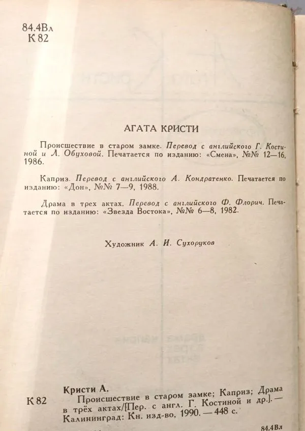 Knygoje yra romanai "Įvykis senoje pilyje" (Lietuvoje žinomas kaip „Kūnas bibliotekoje“), „Kaprizas“ ir „Drama trijuose aktuose“.