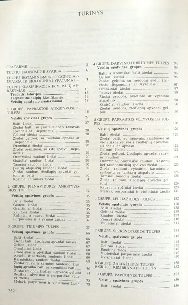 Knygoje pateikiamos pagrindinės žinios apie tulpių biologiją, klasifikaciją ir detaliai aprašytos 235 veislės.