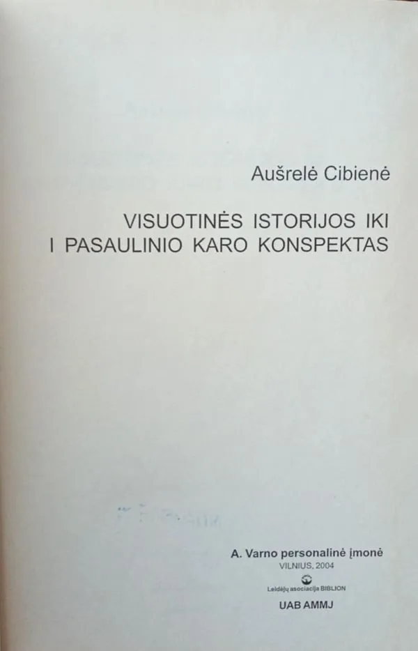 Knygos turinys pateikia visuotinės istorijos santrauką nuo seniausių laikų iki Pirmojo pasaulinio karo pradžios (1914 m.). Medžiaga yra susisteminta kaip konspektas – glaustai ir tiksliai pateikiami p...